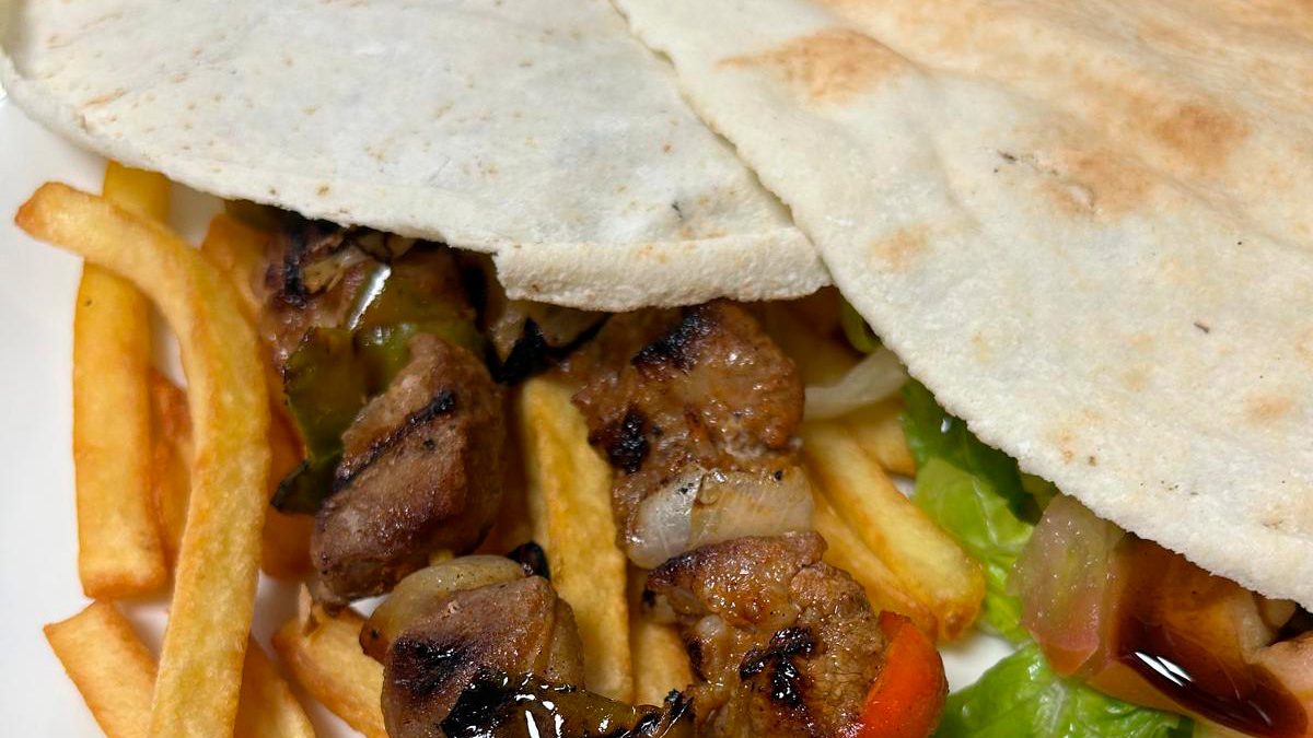 4️⃣ Montar el shawarma: Calienta los panes de pita y rellénalos con la carne, los encurtidos, la lechuga y el tomate. Añade la salsa al gusto y enróllalo bien.