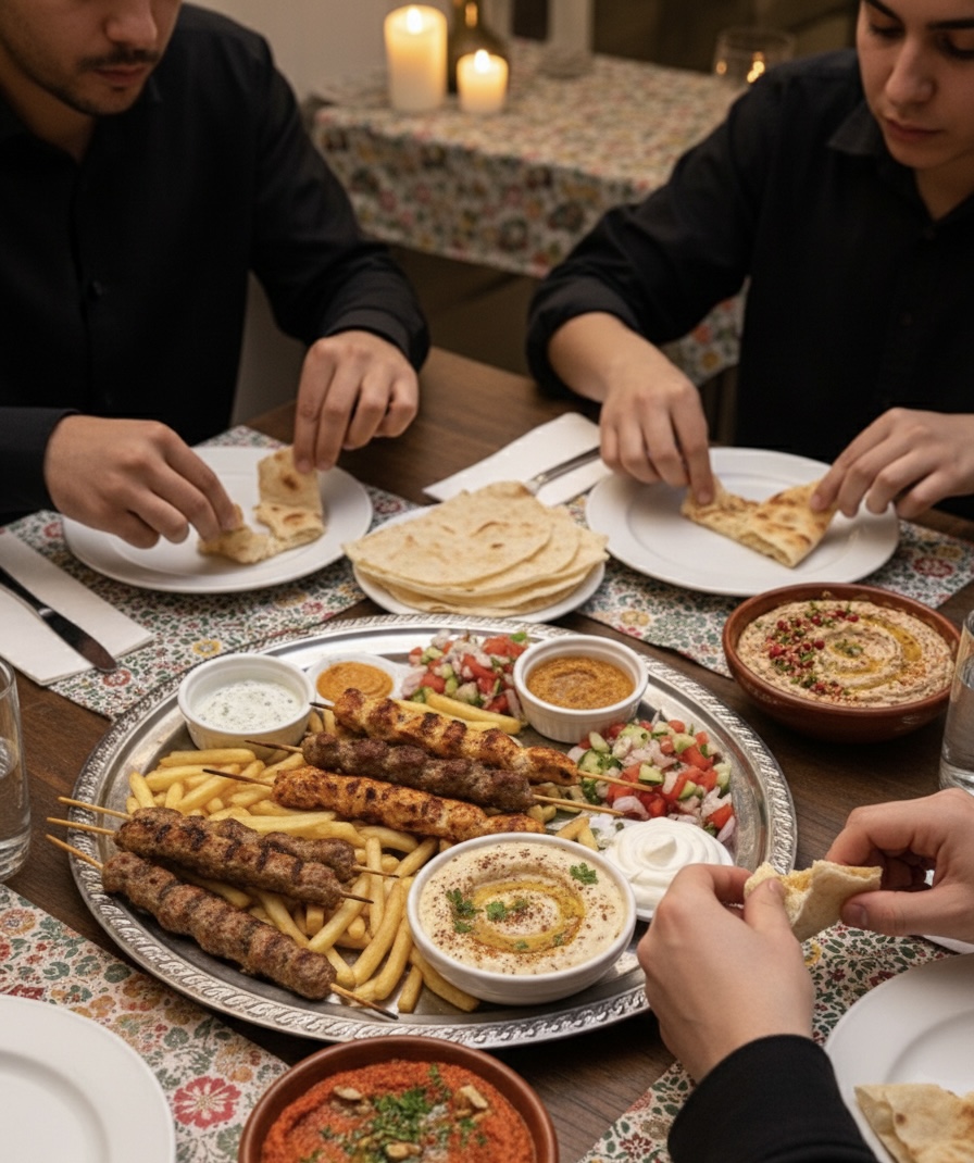 Pan sirio en el centro de la mesa compartido entre amigos